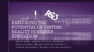 The second presentation, “Exploring the Potential of Virtual Reality in Higher Education”, featured research on the use of virtual reality by faculty and students at ACU in classes across the higher education curriculum including physics, sociology, and biology. The research focused on the benefits found in scholarly literature that was realized in our classrooms.